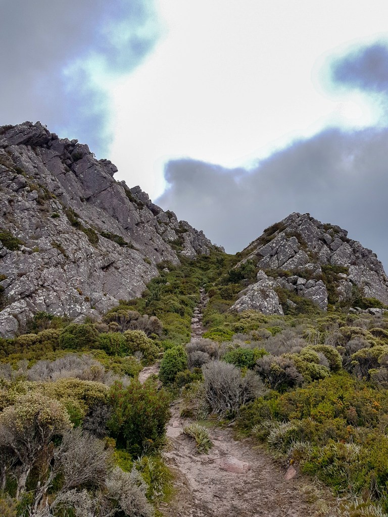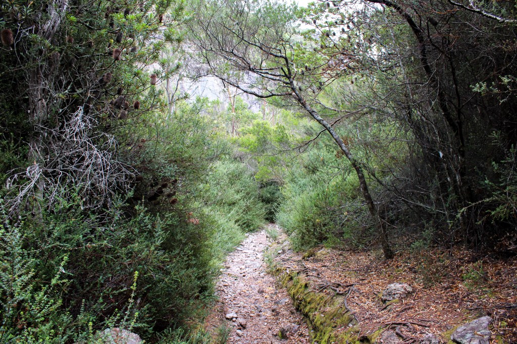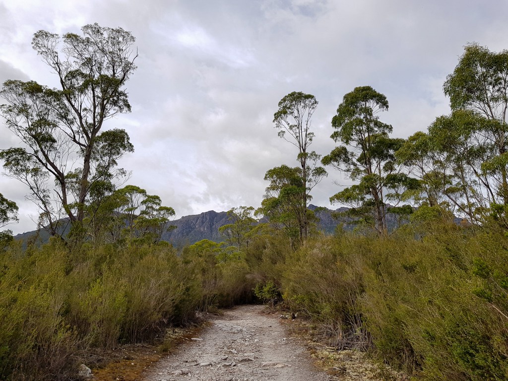From the lookout there is a relatively brief duck-boarded section that turns back into an easy to follow but not overly marked track in respectable time. This track runs along a surprisingly flat section for a long while, reinstating the sense of seclusion and wilderness. I had heard, before embarking on this venture, that this is one of the better known sites for snake sighting. Tasmania only has 3 types of snake, all of them venomous. The good news is that the antivenom for all Tasmanian snakes is the same so identification is not necessary. The bad news is that 2 of the 3 snakes are among the most deadly in the world (if you planned a trip to Australia you don’t get to be shocked that the danger noodles are deadly!), the other good news is that Tasmanian snakes are fairly timid most of the year, follow up good news is that first aid is straight forward (immobilise the limb, apply a reasonable amount of pressure and keep the victim as still and calm as possible) we carry 4-5 rolls of bandages with us everywhere we go as we tend to frequent the same haunts that snakes do. There is more information on the snakes of this state on the Tasmanian government website. We saw one small snake and the poor little thing was trying very hard to escape us across a patch of sand and it couldn’t wriggle away fast enough and we laughed at it but didn’t photograph it because approaching a fleeing, potentially deadly animal is a recipe for a negative outcome.