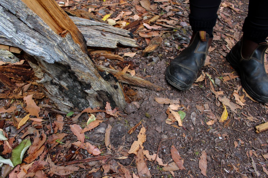 The start of the walk takes place on a wide forest track, open enough for us to walk side-by-side and chat. We caught a few glances of the cliffs we were working our way over to through the trees, and birds chirped incessantly overhead and all around. It was a very comfortable and steady immersion with the sensation of seclusion marred only by the sight of a dry lightning struck tree, the charred shards of which were driven deep into the ground. Tasmanian rainforests have suffered severely from drylighting related bushfires this year, and this was a sobering reminder of how close Mt Roland came to being a statistic.