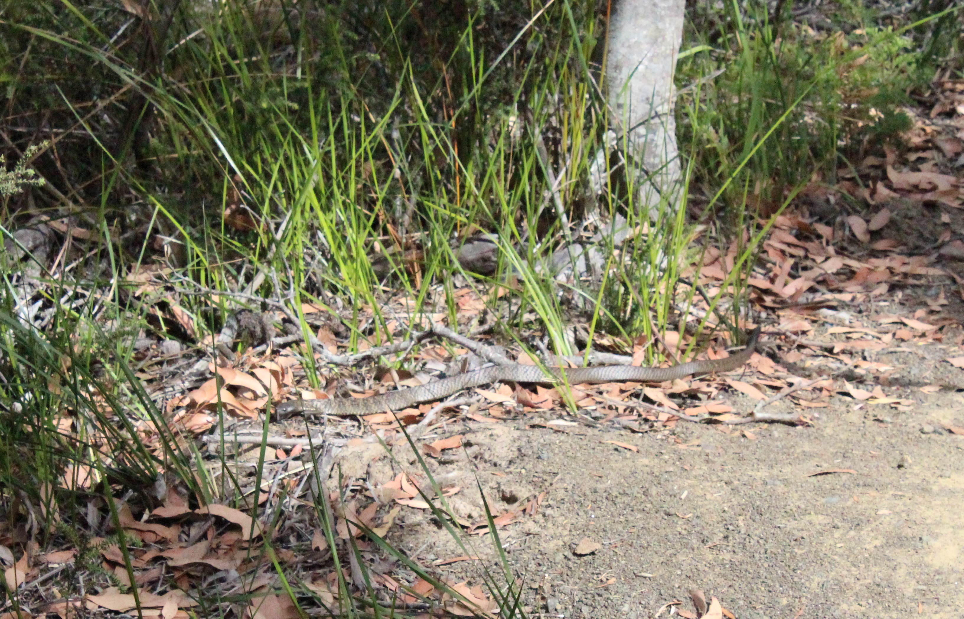 The stick, which turned out to be a tiger snake, was sunning herself on the path and had clearly gone unnoticed by the couple walking a few minutes ahead of us which had disgruntled her terribly as she had her hood out (tiger snakes are a member of the cobra family) but was otherwise not behaving aggressively. We waited just off the path, a few metres from the snake, waiting for either the snake to move or the people behind us to catch up so that we could tell them that there was a snake. The couple behind caught up first. They were not locals and the man was a self-proclaimed ophidiophobe who knew nothing about Tasmanian snakes beyond the fact that they are all highly venomous (you don’t really need to know much else about them TBH). He also was not even remotely reassured by the fact that he struggled to see the snake even when I was pointing it out to him. His partner was in no way likeminded and literally walked right up to one of the world’s most venomous snakes to take a selfie. This is not a safe or sensible way to behave when one encounters a Tasmanian snake, and I do not condone it; however this particular specimen was timid enough to slither away without a fuss after her moment in the spotlight (I assume it was female based on it being shorter than the males that I have seen while still being definitely fully grown).