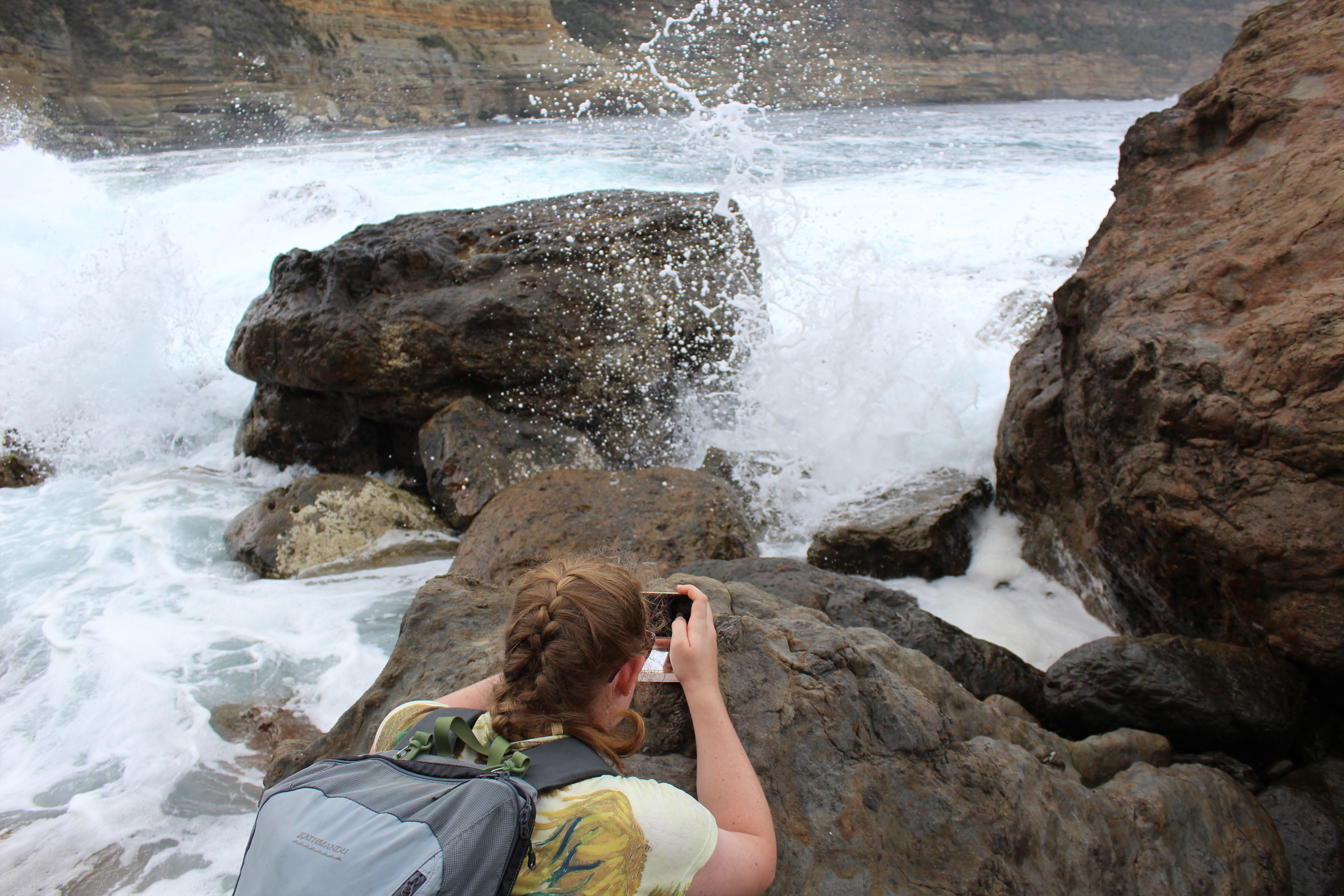 Ship Stern Bluff is visible from the first Cape Raoul lookout, it can also (given the right weather) be heard from the Raoul track. Adventure sport enthusiasts may have heard of it because Red Bull hosts an extreme surfing competition, Cape Fear, in the very big waves at the Bluff. If surfing isn’t really your thing but emerging from a rainforest out into the beach to see roaring waves and feel the salty sea air against your face is, then you’d love this walk. It is a relatively light affair, moderately steeper than Cape Raoul but only about 3 hours in total. We were very lucky with the weather (depending on your definition of luck) and managed to time our arrival on a day where thunderstorms were predicted. We packed all of our wet weather gear, brought an extra large sandwich bag to ensure the good camera stayed completely water proof, and prayed to the rain-cloud fairies for some dramatic, black rain-clouds over the crashing waves of one of the world’s most dangerous surfing spots. We also put all of our belongings in plastic bags inside our backpacks to keep everything dry and then set out in the hot, humid summer air.