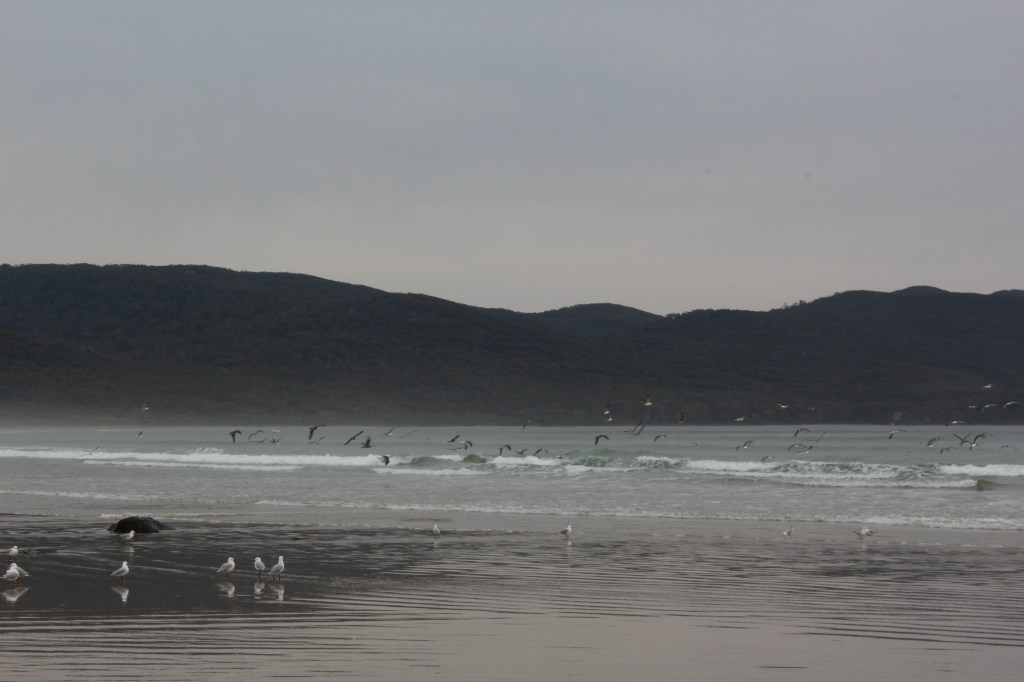 We picked our path delicately so as to remain on the wet sand and not disturb the nesting birds who favour the soft sand (those birds will swoop you and scream bone- chilling insults at you if you get too close so just don’t do it, even though the little chicks are cute and fluffy). There is something particularly smile-inducing about seeing a seagull in their natural habitat. Seagulls that have grown used to human interaction tend to be aggressive, demand food, poop on everything you hold dear, and are generally a nuisance. This is not at all the case with the birds in the wild, they do little stomping dances in the waves, they groom each other, they chitter rather than screeching, and I swear I saw one surfing the waves. The beach stretches on for a long way and we were sandy and windswept by the time we reached the dilapidated 4wd track (is there any other kind) that heralded the rest of the walking track. The 4wd track leads to a campsite and marks the official start to the East Cloudy Head walking track (yup, the 3 km of beach are just a warm-up). We went to log our walk in the logbook only to discover that it was just a bunch of scraps of paper chucked into the little logbook holder, this was the first clue that not many people do this walk (second if you include all the birds on the beach, which was a red flag we should have payed a bit more attention to).