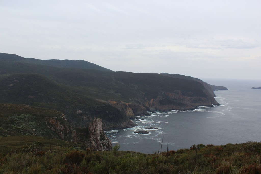 Towards the end of the walk the path hugs the coast, along a cliff. I have heard that it is possible to see seals there sometimes, but we did not see any (they have really good camouflage, you might see them if you carry binoculars with you). We were lucky to see a kite (the bird of prey, not the toy) hovering over us and diving in the waves. Bruny truly is one of the best places to go to see birdlife in its proper, wild habitat.