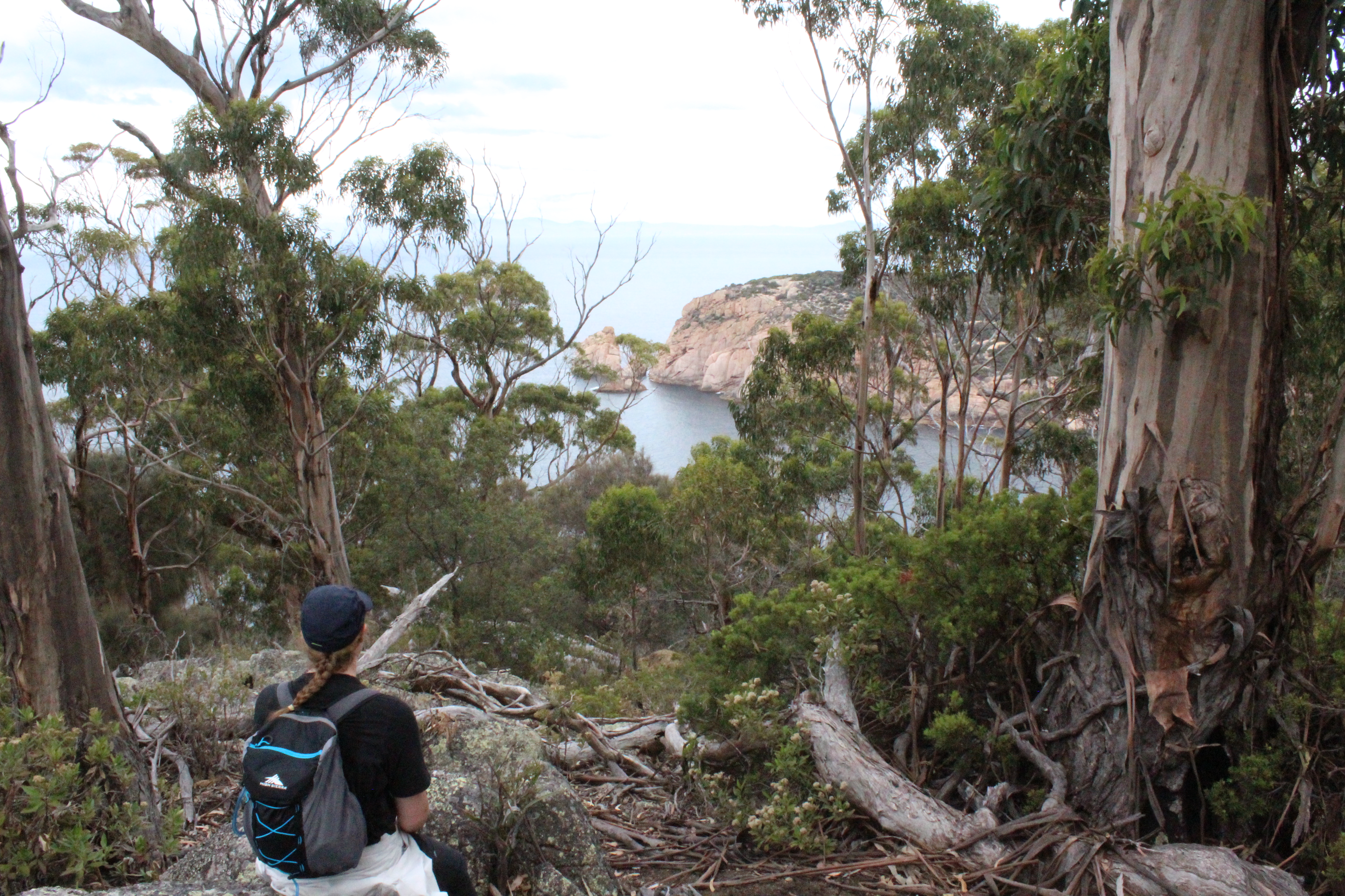 The climb back up the rocks to the “Haunted Bay” sign is the most exhausting part of the return journey (it only lasts for about 5 minutes, but we were so puffed by the end of it that we had to take a break). The rest of the way is downhill and wooded enough to offer pleasant shade. The track is also wide enough to fit Sommelier and I side-by-side which tends to greatly increase our wildlife viewing experience because we have enough space to use non-verbal communication (excitedly slapping each other’s arms) in the event of an animal sighting Our return to the fork in the road passed without incident, there were plenty of little animals to be seen, including what we suspect is a Betong (it did a sneeze and it was adorable!!!). We stopped to reapply sunscreen, check our water supply and have a little snack and a sit down in the beach-sand and banksia-shade at the fork when we were greeted by the tiny, non-descript chirps of the forty spotted pardalote. The dull yellow/ olive green miniscule bird with a very short beak and tiny, white spotted, frantically whirring wings is one of Australia’s rarest birds. Found only in the coastal regions of Eastern Tasmania and tending to prefer the high eucalypt canopy we have spent a lot of time (particularly on Bruny Island) trying to catch a glimpse of them. We were unable to photograph them on account of it would have required us stepping off the path and also because they did not stand still for a second longer than just long enough for us to ascertain their identity. To quote Sommelier, “I have no idea where they think they’re going, but they sure are in a rush to get there.” In summary, if you see a tiny flash of yellow and white make a little chirrup sound as it barrels towards the unknown in the tree-tops there’s a chance it’s a forty-spotted.