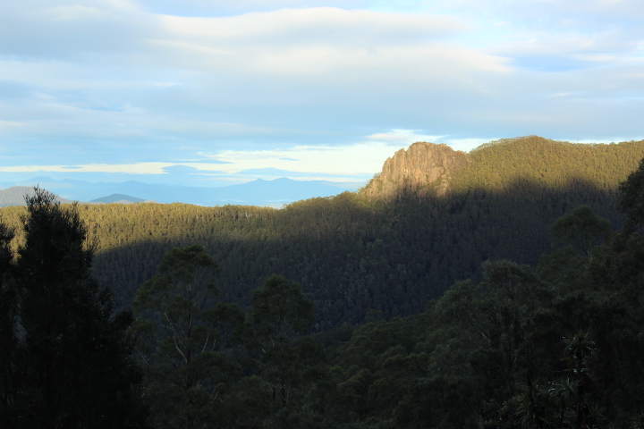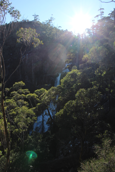Progress was muddy, slippery and slow as much of the path was under water, but we leapt and slid our way about very merrily with the sounds of thundering water occasionally reaching our ears (we suspect from a different source than the one we sought). The wintry sun never rose much higher than the mountain so we felt almost permanently bathed in the gentle golden glow of dusk. Birds chirruped joyously in the quiet and we barely noticed that we were on an inclining track until the track alerted us to nearby cliff faces and gave us the happy news that the Wellington Falls lookout was only 5 minutes away. We ate our thermos porridge in the complete solitude of the surging falls before heading back the way we had come, combing through throngs of people once we returned to the Potato Fields.