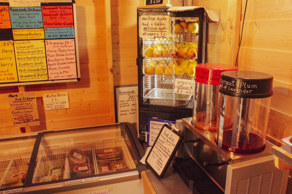 We almost missed the turn off to Whispering Spirit Farm (by which I mean we fully missed it and had to turn around), which, we now know, is one of the best honesty boxes in Tasmania. Whispering Spirit used to come to Farmgate Market on Sundays, and we have missed them, but their delicious, old-style European baking can still be foraged direct from the unmanned stall about 2.5km up a dirt road between Huonville and Franklin (named ‘Swamp Rd’). There is a sign, follow it, it is worth it. Like very hungry kids in a candy-shop we went nuts in the tiny little shopping quarters. We bought frozen cherries, frozen myrtus berries, frozen tayberries, youngberry jam, spätzle, a loaf of bread, the world’s best blueberry cheesecake (not its official title, just the one I awarded it based on my extensive research), and homemade morello cherry and dark chocolate ice cream. Now fully stocked on a myriad of tasty treats we continued on to the Hastings Caves visitor centre, eating our ice creams as we went.