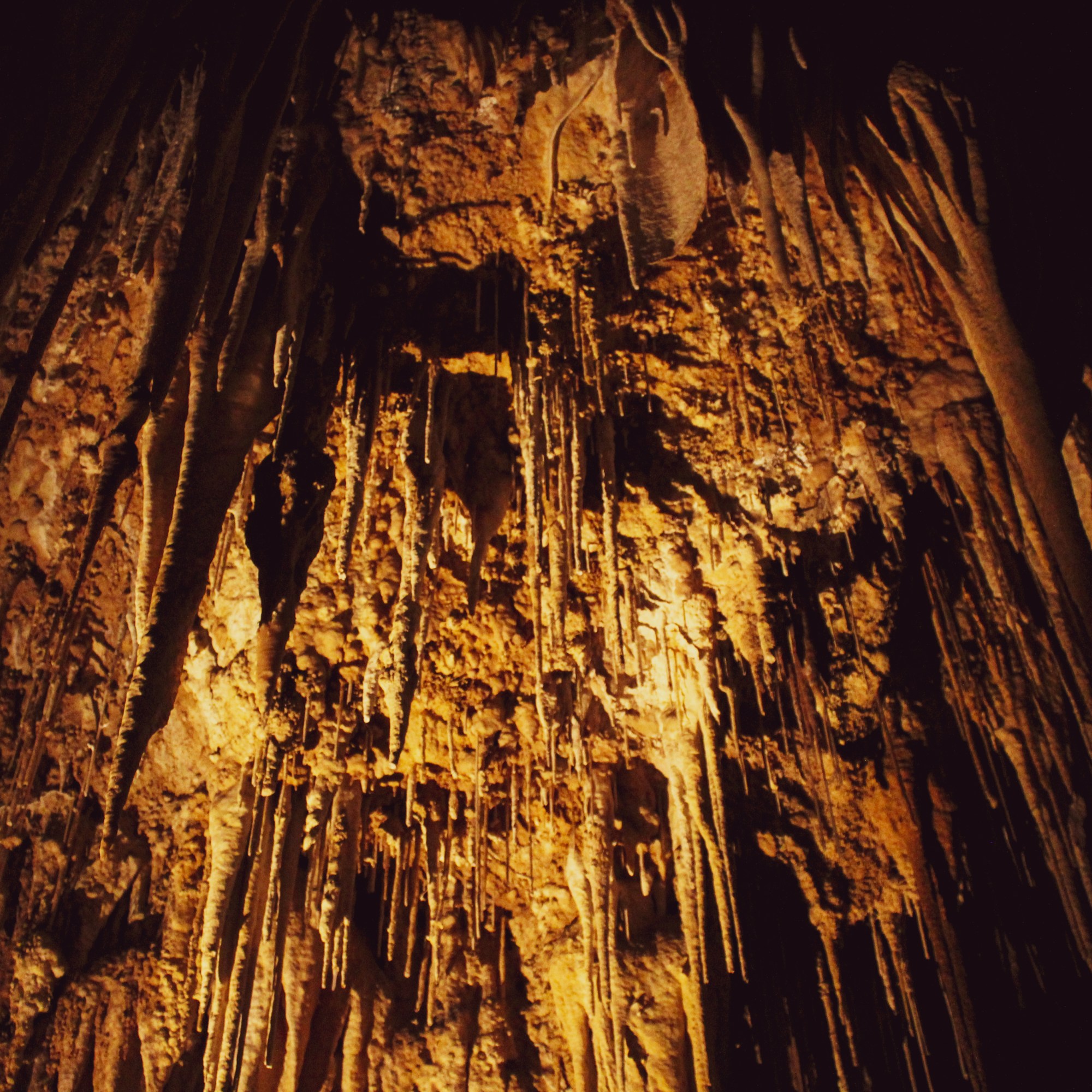 We navigated the stairs and a few low hanging sections with Paddy’s help. Each chamber has its own characteristics; the largest chamber ‘The Stage’ has particularly notable acoustics and has been used for concerts and weddings in the past, ‘The Atruim’ is also an open-enough-to-be-bareable canopied by gloriously rippled ribbons of rock that look like poured caramel; but the chamber known as ‘Titania’s Palace’ is the tableau that saw Newdegate named one of the most beautiful cave systems in Australia. The columns meet the natural floor that glistens like polished ice and the stalactites look like chandeliers just waiting to be lit so the ball dance can begin.