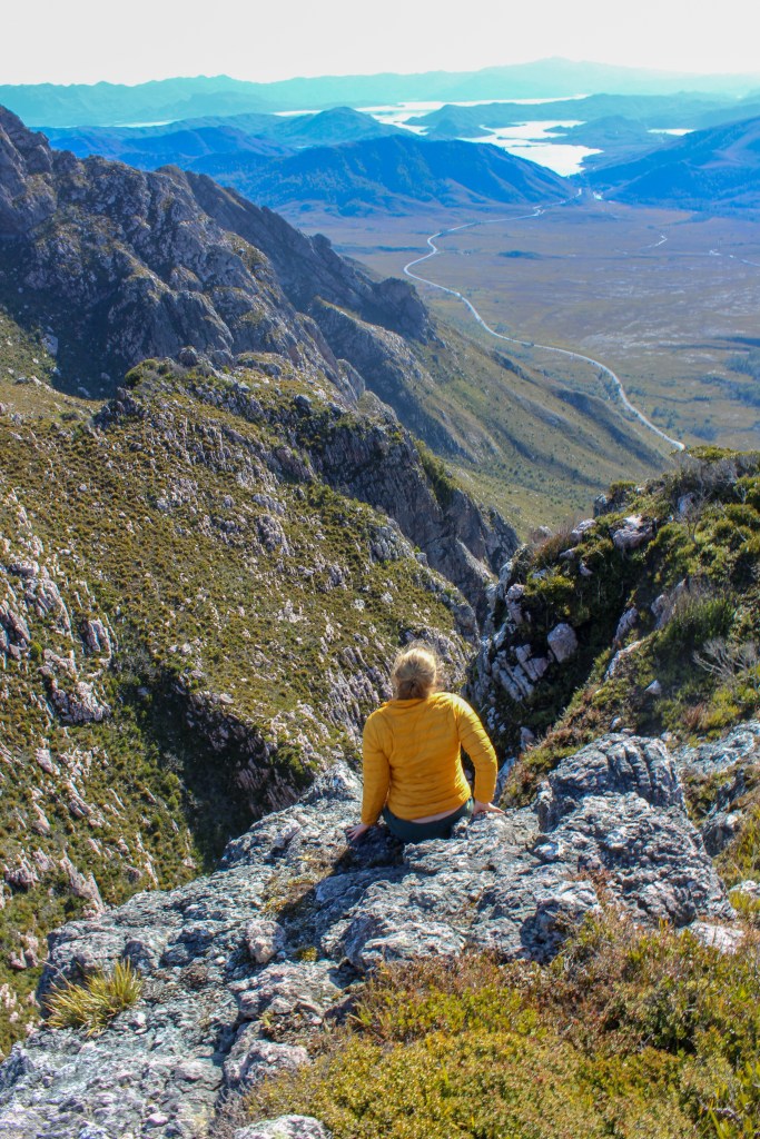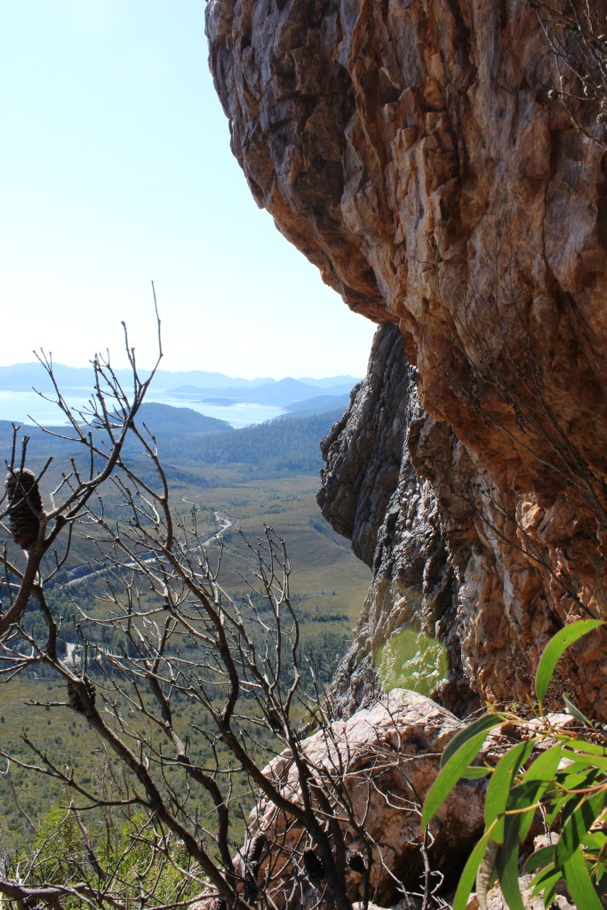 We ate lunch nestled in the gully overlooking Lake Pedder, flanked by two pale pink cliff faces before embarking on the final, significantly steeper leg of the journey.