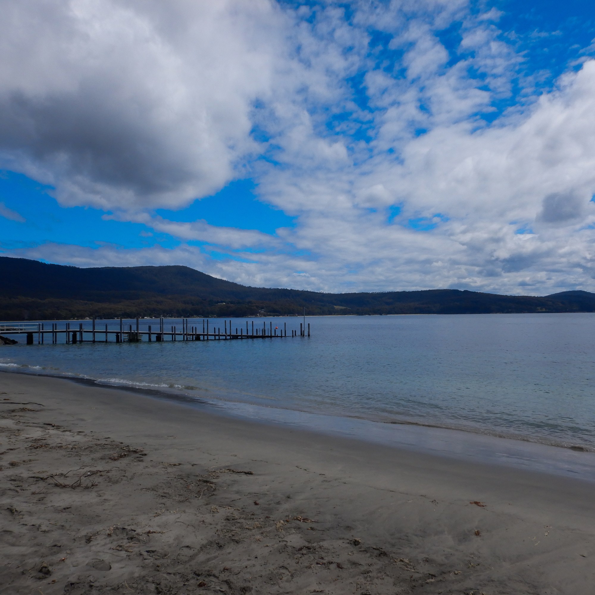 It was just past noon when we were officially starting the walking part of the “picnic walk” which departs from the top left of the Pennicott Seafood Restaurant carpark and moves along the beach until the beach runs out, at which point it plunges into the bush. It is clearly signed and easy to follow once in the bush. Please note that this beach is a protected bird breeding ground so please stick to the wet sand and leave the soft sand dunes to the nesting birds. Failure to do so many see you swooped and seriously injured by an oyster catcher.