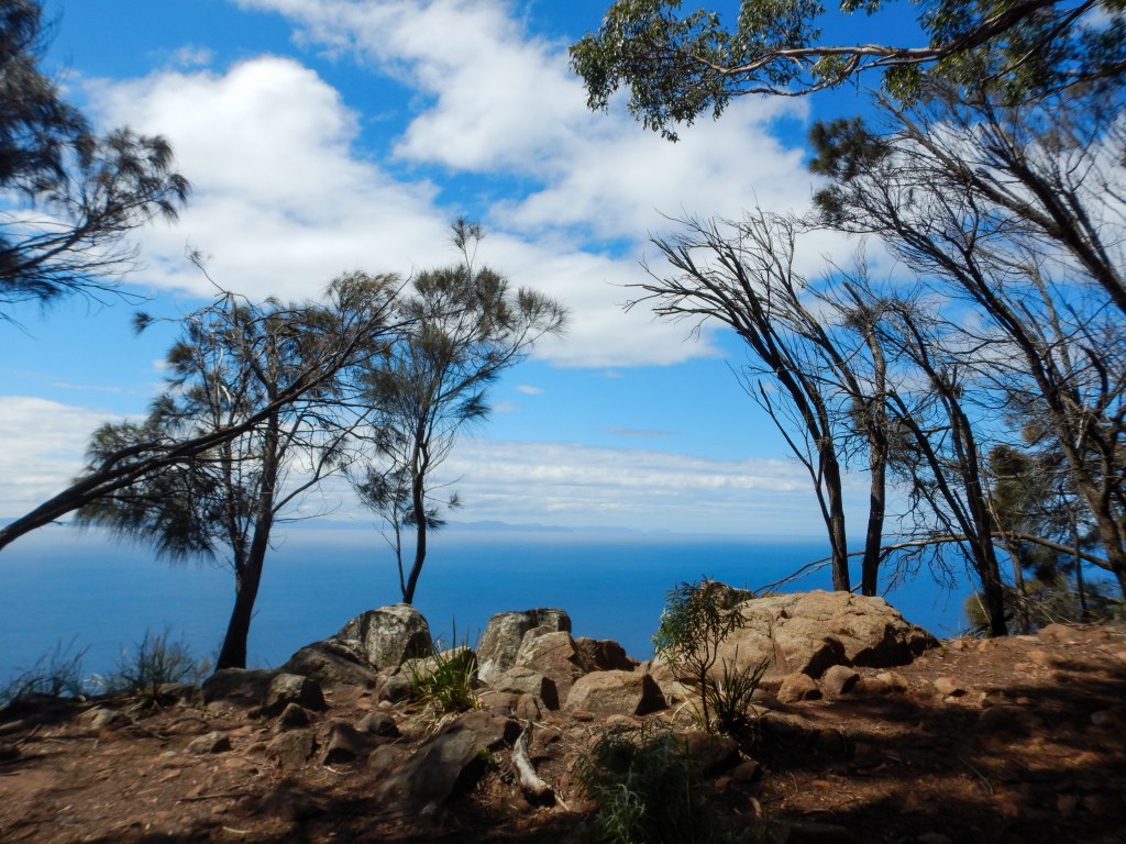 As we were alone at the peak we settled in at the very end of the track, agreeing, as a couple, to move along if anyone else came along wishing to enjoy the view. The afternoon air was still and sea below was only gently caressing the rocks. There were barely any waves, so the ocean took on the facade of a peaceful inland lake. We were undisturbed by other hikers until the very end of our foraged feast. Content with having basked in the sultry spring sunshine and admired the triumphant blue of the calm ocean below we packed up and carried on, leaving the lookout for others to admire our little island state from.