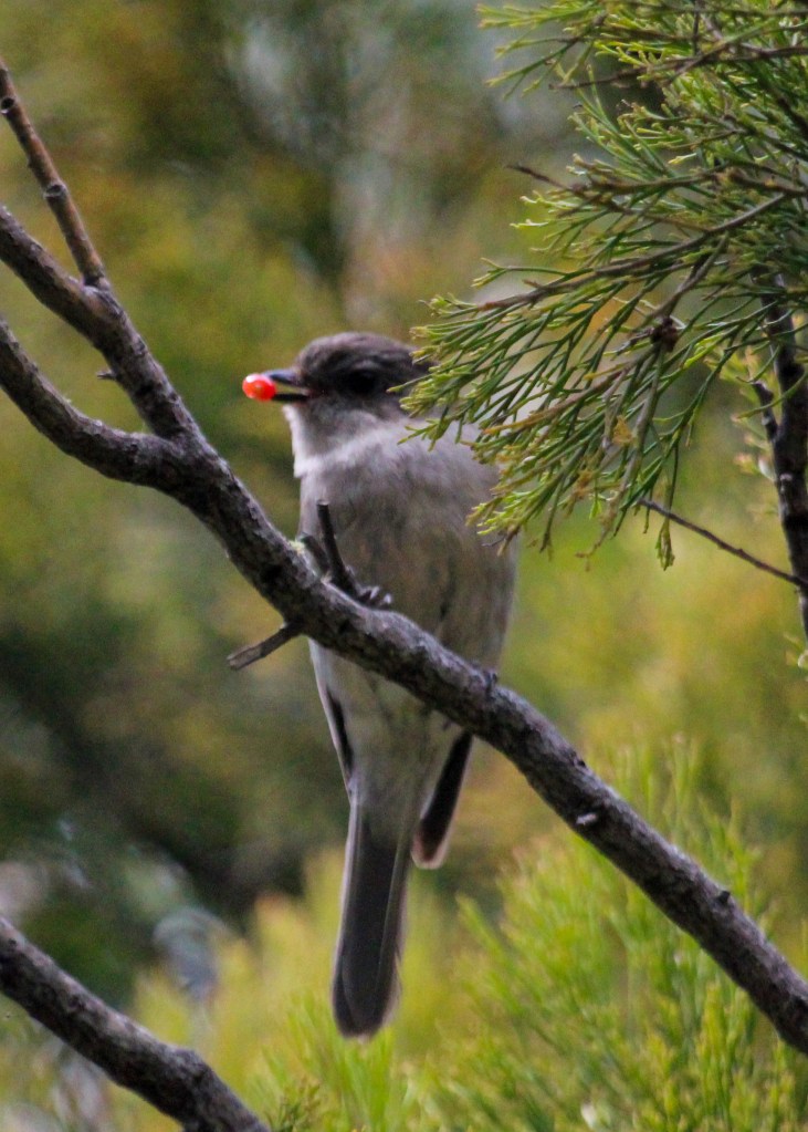 Bruny Island is one of the known habitats of Aurtralia’s rarest bird, the 40 spotted pardalote, and we were hoping to see one so we took a very quiet and leisurely pace through the woods, dividing our attention between the uneven ground below (absolutely littered with sticks), and the canopy above (alive with the chittering of birds). Sadly no 40 spotteds were spotted, but we did see a striated pardalote and a range of other small birds.