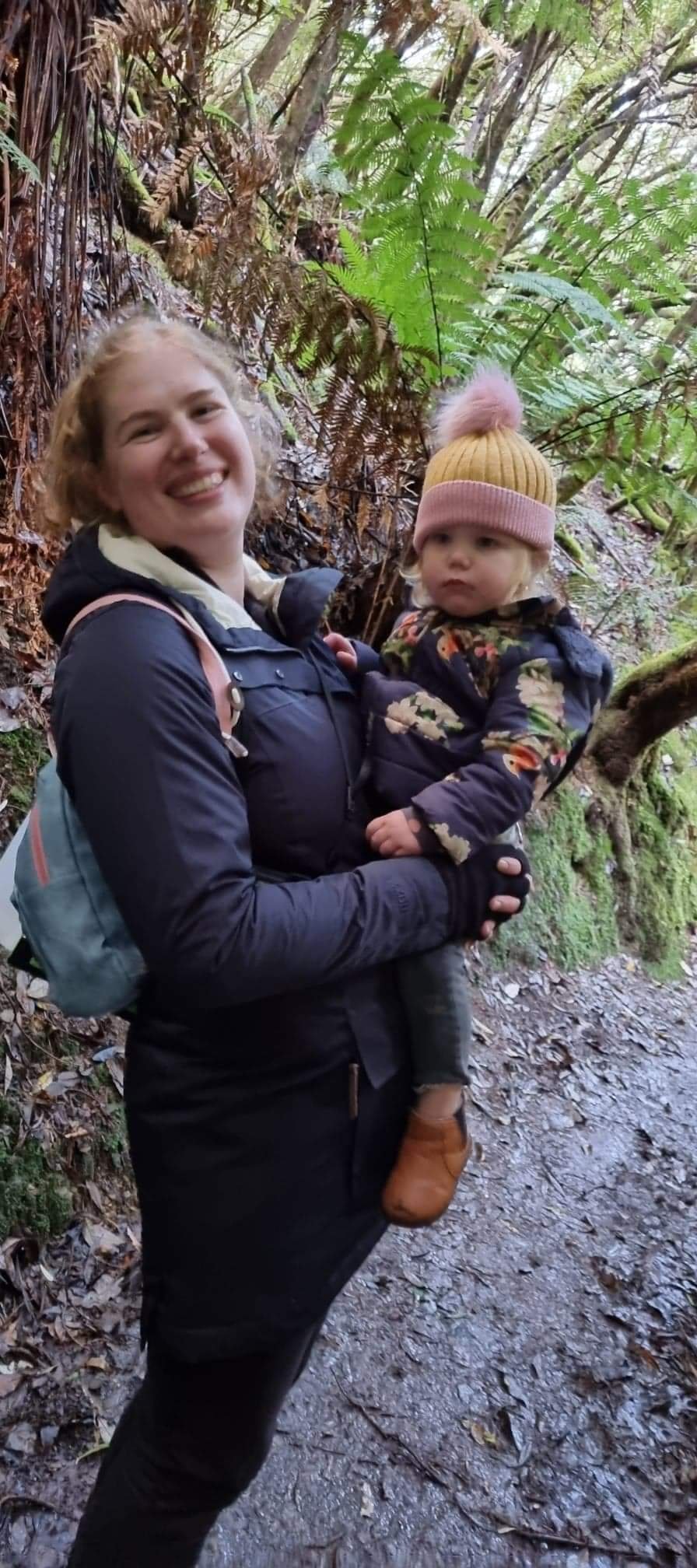 The track is fairly narrow, a little too narrow in most areas for an adult to hold the hands of 2 children at once without one child trapsing dangerously close to the edge of what could reasonably be considered a moderate cliff/gully. As we were heading out in the afternoon and there had already been some rain that day we probably saw some of the worst mud that the path had to offer, honestly, it was not a lot, but we would advise ensuring all the tiny toddlers in your party have waterproof tiny toddler shoes, as mud goes much further up the bodies of the very small humans than it does the adult sized ones.