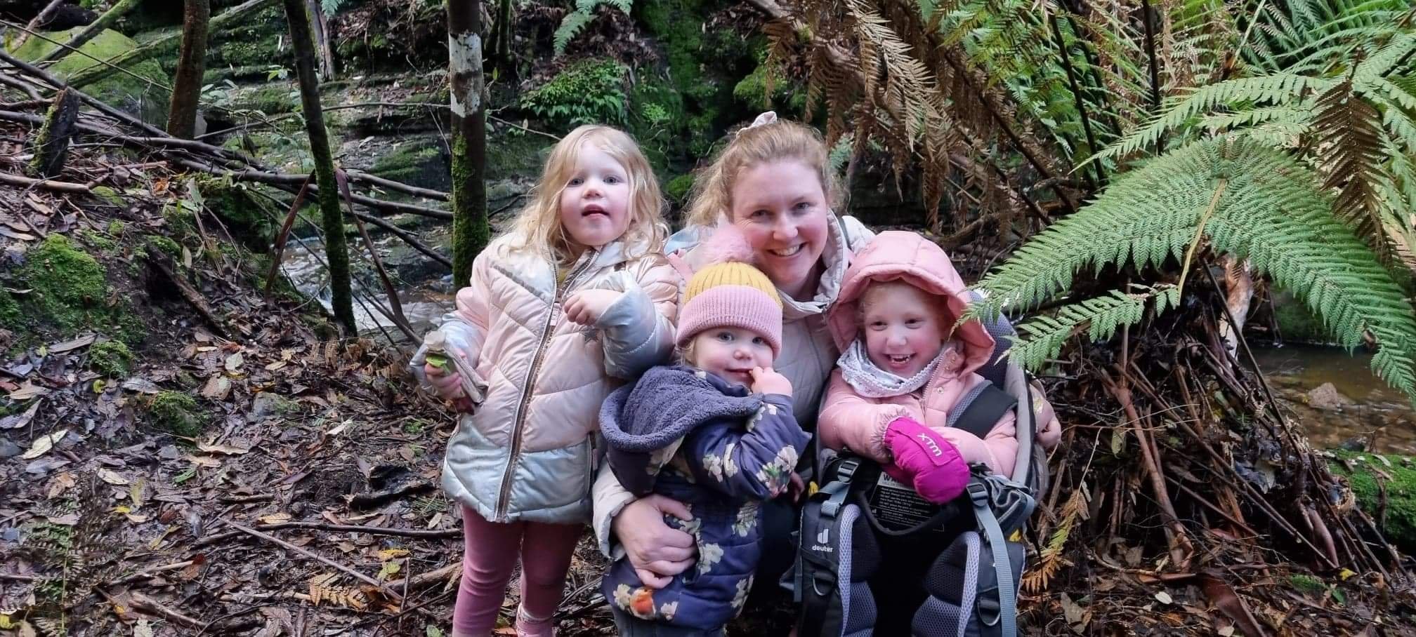 Getting out of the house with 3 smalls is a challenge, any parent can confirm this. The small’s mother (mummy L) started the packing process the night before and I was chief in charge of light snacks. Miss 3 was an enthusiastic warm jackets finder and we always have nappies and wet wipes on hand. Did you know you need about 5 nappies for a 2 hour outing with 2 children in nappies? This was new information to me who was well on track to packing nowhere near enough of any baby essentials before Mummy L intervened. I was ready to stuff my usual 5 bandages into the sparkly unicorn bag (at the expense of at least 2 nappies) but Mummy L inisted that we really would need at least 5 nappies and a whole pack of wipes, so I grudgingly stuffed my favourite bandage (the snake bite one) into my pockets along with the head torch that I maintain is an essential for all walks, even the 1 hour ones. In all the excitement of packing and getting ready for our first big outing together we almost forgot lunch! During the gobbling (as quickly as 3yos are able) it came to light, thanks to a conversation with experienced-hiker-grandma, that our original plan of Snug Falls would likely be too challenging for small children and their impossibly tiny legs. Having promised a waterfall and being unwilling to break a promise to small children who were already packed we quickly rummaged through the internet to find a more suitable walk, settling on Myrtle Gully Falls, which is allegedly a smoother track with much easier car parking options (as I have not done Snug Falls I cannot confirm these allegations).