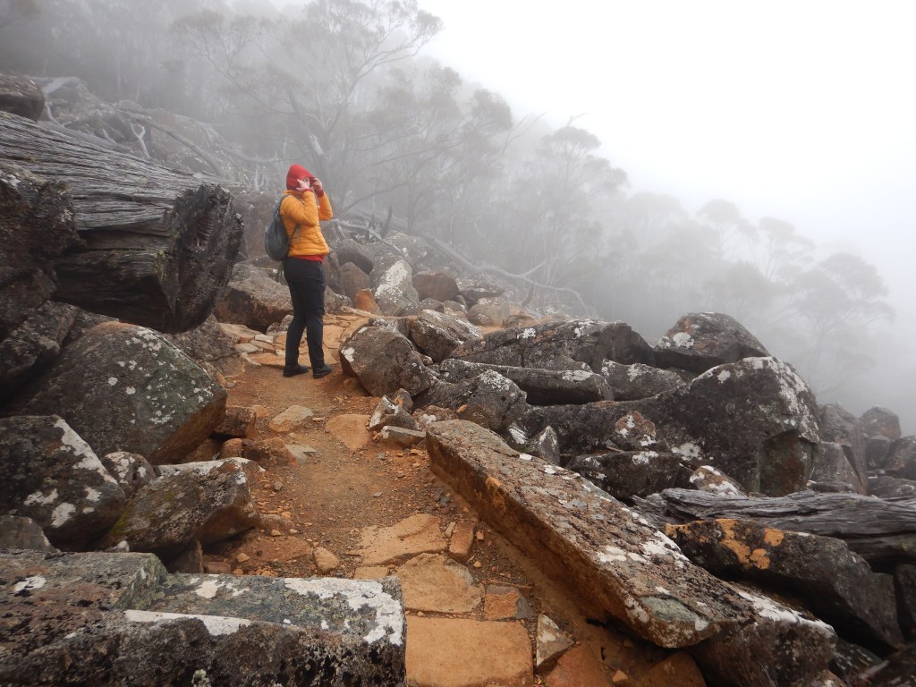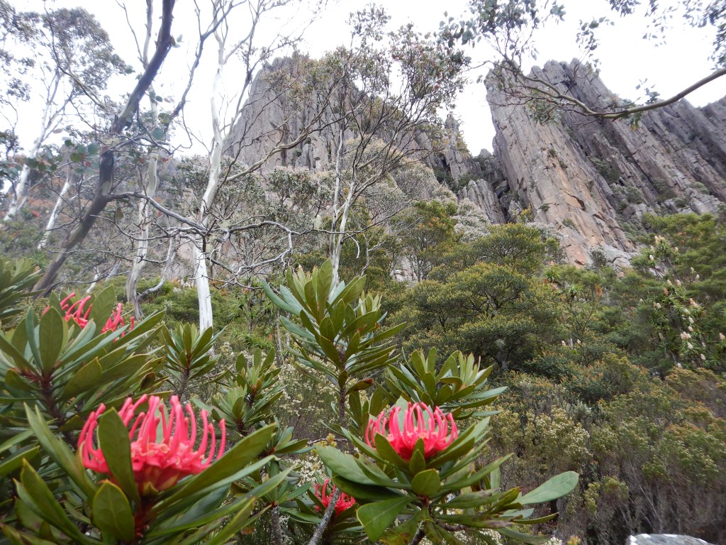 The Organ Pipes track, in the Wellington National Park is one of the many intersecting tracks on the slopes of kunanyi. It is paved with rocks, contains a sharp drop off along one side of the path for most of the track. visitors can walk below the stunning natural rock formations known to locals as “The Organ Pipes” which are one of my favourite features on the mountain’s countenance. The jutting, squared off, vertical columns of dolerite have always captured my attention. Despite always been enamoured of the shadows they cast, I spent much longer than I am proud to admit putting off this stunning walk. In order to ensure we did the track justice and could appreciate it to its full potential we decided to wait until waratah season before heading up.